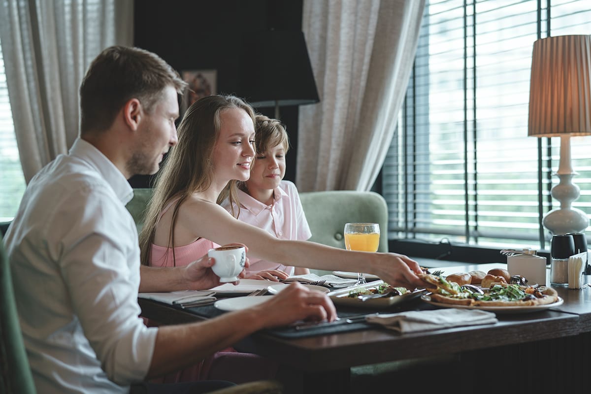 Bardzo ważne jest także dobre dopasowanie krzeseł tak, by można było łatwo i wygodnie przysunąć się do stołu do niego podczas jedzenia.
